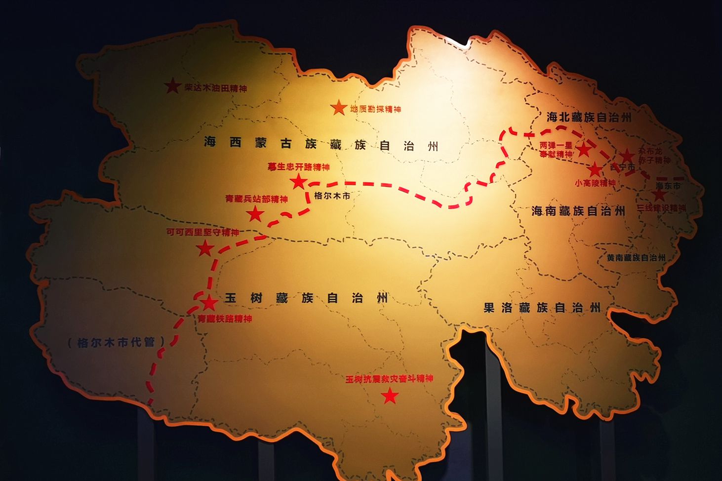 展览精心设计了“亲切关怀 巨大鼓舞”“奋进七十载 辉煌新青海”“‘一优两高’让青海更美好”“时光博物馆”四个主题展区,运用图片数据、文字视频、实物场景、沙盘模型、互动体验等多种手段和元素。一组组数据、一幅幅照片、一件件实物,生动反映了70年来一代又一代青海儿女热爱青海、建设青海、奉献青海的精神风貌,真实展现了各族群众扎根高原、无私奉献、接续奋斗书写的波澜壮阔的青海建设史和翻天覆地的巨大变化。