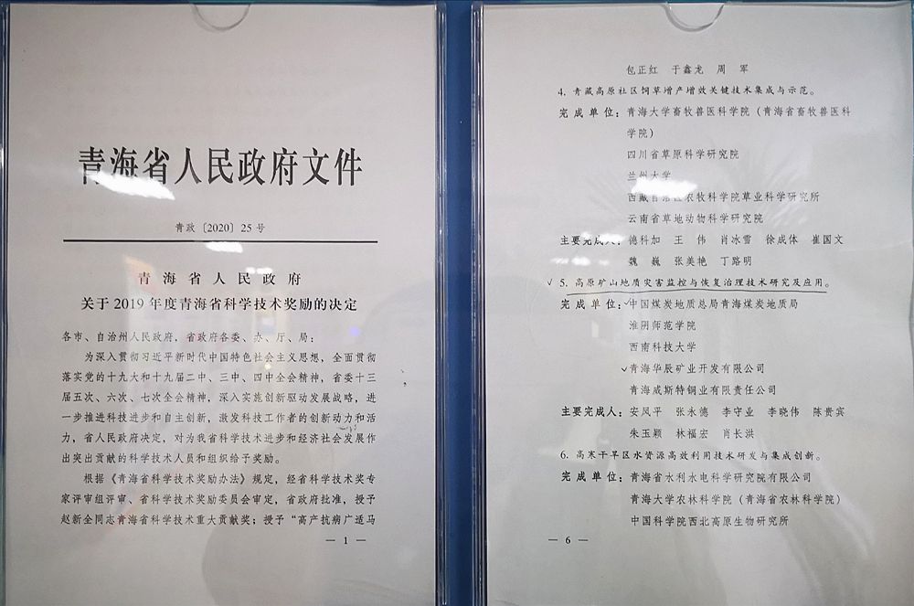 日前,2019年度青海省科学技术进步奖评审结果揭晓,青海局牵头申报的《高原矿山地质灾害监控与恢复治理技术研究及应用》项目获得青海省科技技术进步奖二等奖。