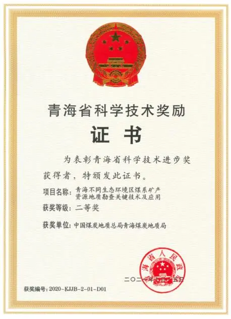从近日召开的青海省科学技术奖励大会上传来喜讯,由青海局主要实施并完成的“青海不同生态环境区煤系矿产资源地质勘查关键技术及应用”研究成果荣获2020年青海省科学技术进步二等奖。