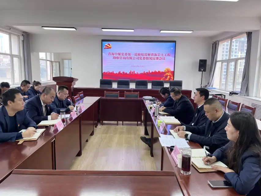 青海中煤党委巡察办负责人,党委组织部负责人、第一巡察组副组长;岩土公司领导班子成员、各部门负责人及职工代表参加会议。