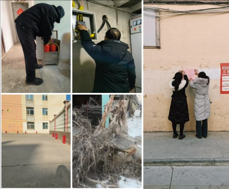 本次检查主要针对应急疏散通道和安全出口畅通、消防设备器材配备和维护、商铺主电缆发热等情况进行彻底检查。对未配备灭火器或过期的15号楼、大学生公寓以及在危墙处违规停车等情况进行立行立改。向景胜物业公司、维宸酒店堵塞消防通道、临时宿舍违规使用电器设备、管理不规范等问题下发《安全风险提示函》,明确整改时限。对于西川南路55号仓库枯死树木进行了砍伐处理,及时消除燃放烟花爆竹可能造成的安全隐患。