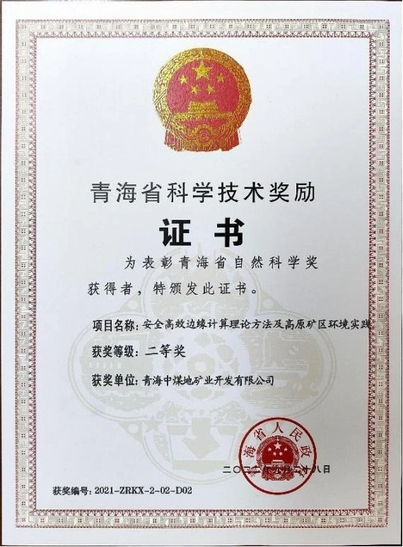近日,中煤地矿业《安全高效边缘计算理论方法及高原矿区环境实践》项目荣获青海省科学技术奖励二等奖,公司原董事长、现公司专家顾问郭晋宁获得个人二等奖。