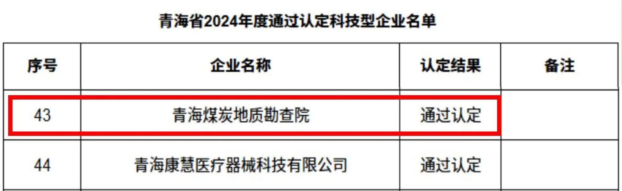 近日,煤勘院通过2024年度青海省科技型企业认定,为下一步申报高新技术型企业、扩大申报科技项目的范围、提高项目申报成功率打下基础。
