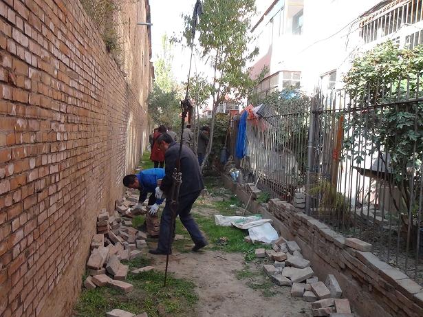 此项工作的有效开展得到了家属院广大离退休职工、家属的称赞,也充分展示了中心基地是我家、和谐靠大家;10月16日全天,基地管理中心组织全体职工第二次到砖厂路13号家属院参加义务劳动。劳动中,中心领导班子成员身先士卒、率先垂范,全体职工争先恐后运砖块,背沙子,所有的身影都是那么忙碌,小工匠们清理杂物、输送物资,大工匠们设计规划、进行铺设,如今,楼后的环境彻底改变了,杂草不见了,垃圾没有了,楼后的道路不再泥泞了。基地是我家、兴旺靠大家的工作理念和中心践行三严三实的具体体现。基地是我家、发展靠大家;砖厂路13号院是中心古城台基地所属家属院,院内共有10个单元,100户住户,2013年10月,基地中心根
