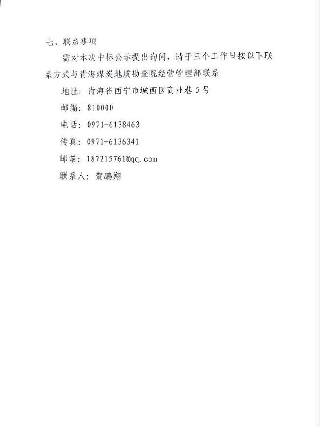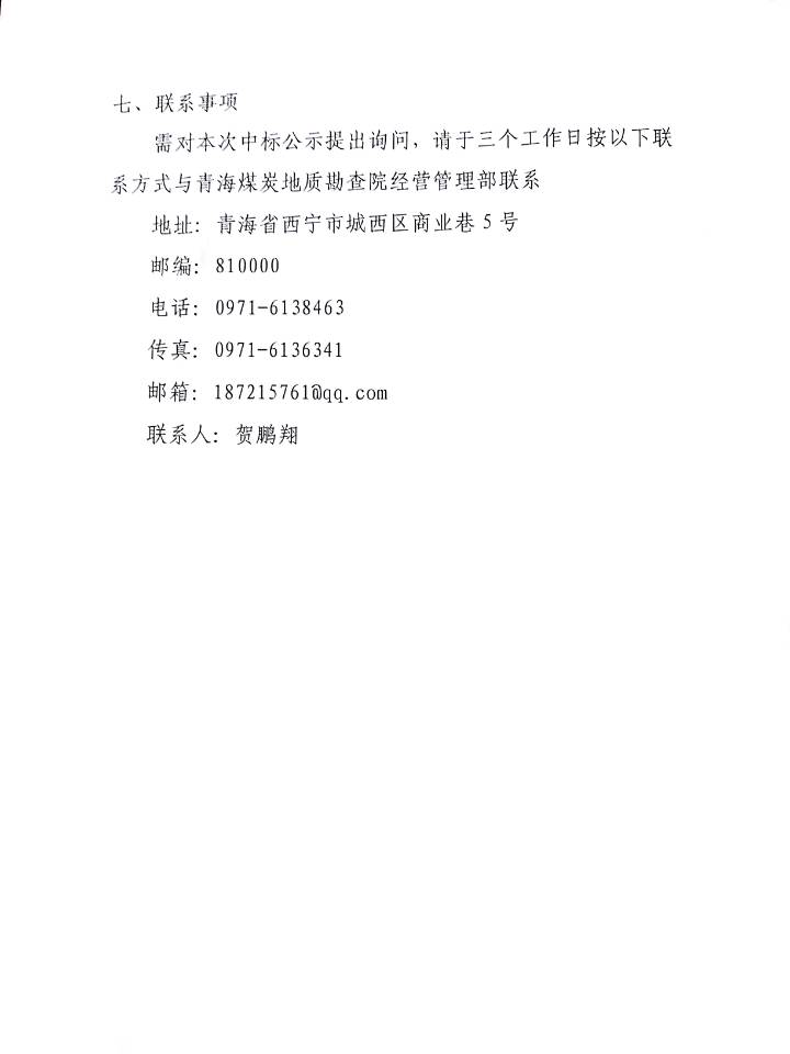 青海煤炭地质勘查院《青海省乌兰县牦牛山东煤炭普查》钻探工程中标公告