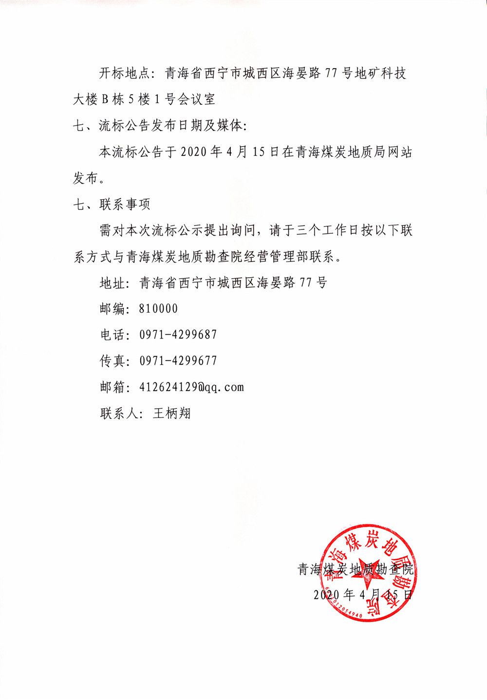 青海煤炭地质勘查院《青海省鱼卡煤田九龙山北煤及煤层气普查钻探工程》流标公告
