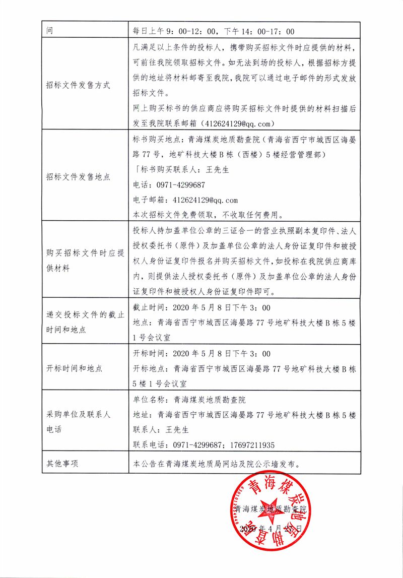 “青海省大柴旦行委团鱼山外围煤炭预查”项目招标公告