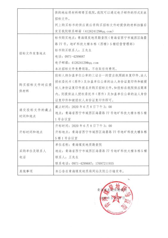 青海煤炭地质一0五勘探队水源3000钻机采购项目招标公告
