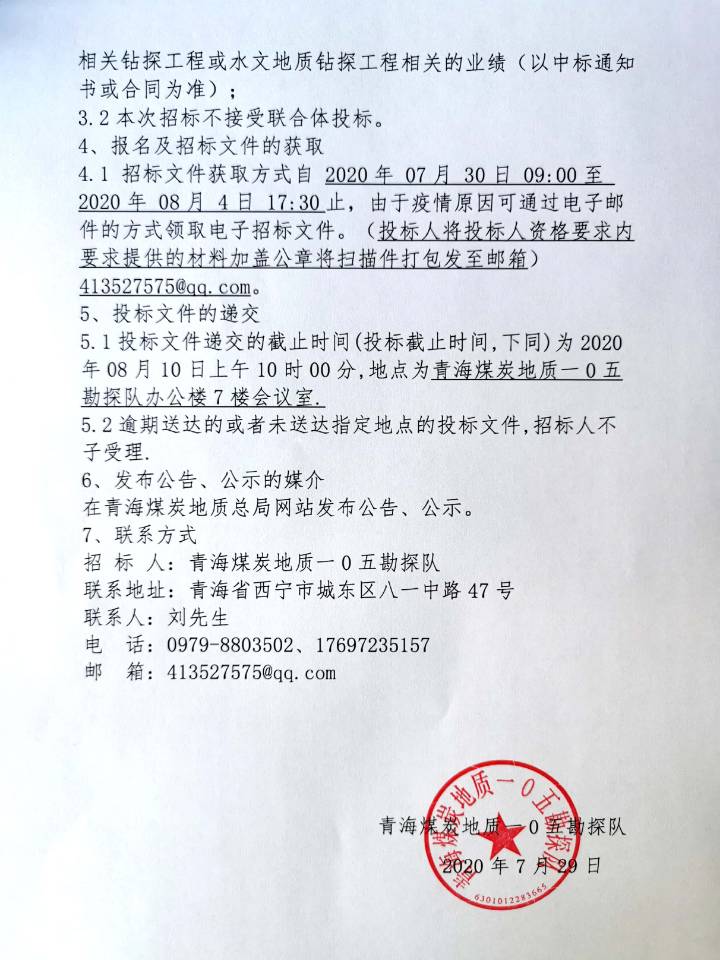 《青海省大柴旦行委绿草山地区煤矿斜井深部及外围煤炭勘探二阶段斜孔及水文地质钻探施工项目》招标公告