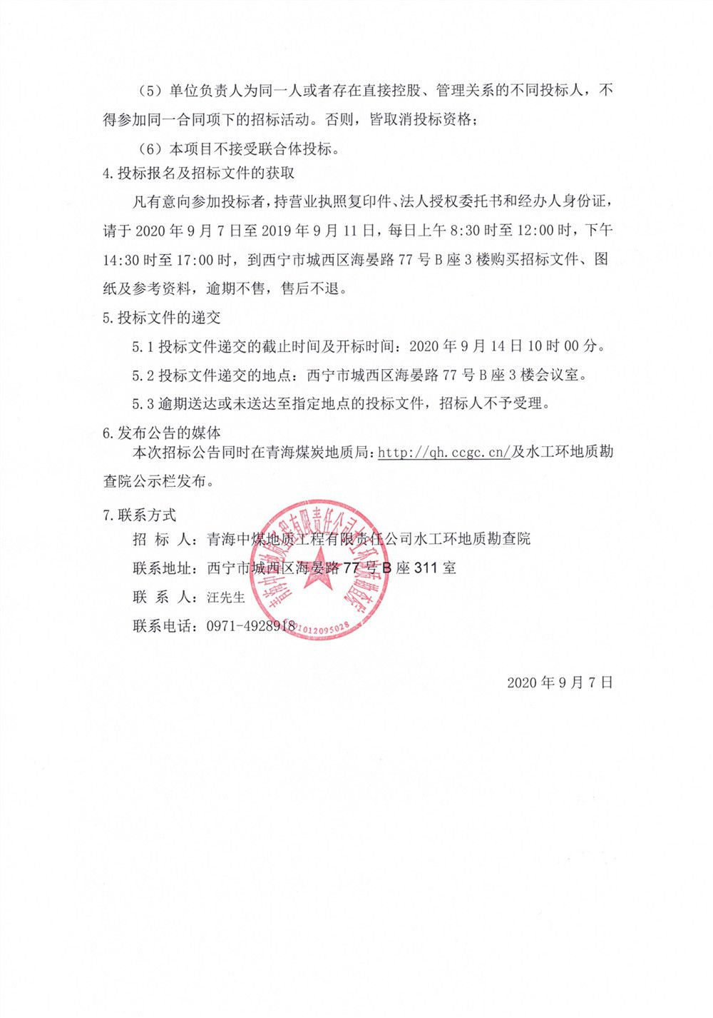 青海煤炭地质勘查院公开招标公告