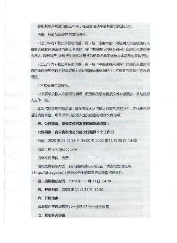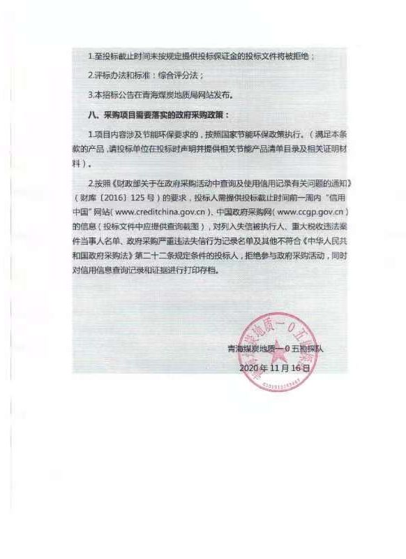 青海煤炭地质一0五勘探队水源3000钻机高架柴油罐采购项目招标公告