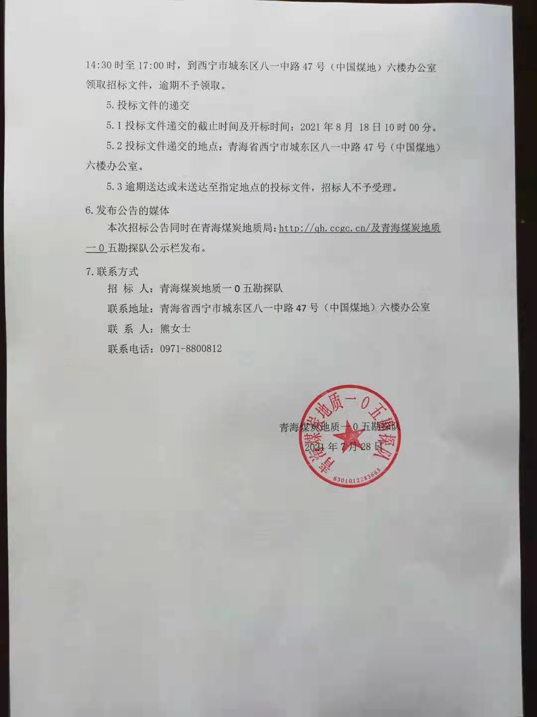 青海煤炭地质105勘探队工装(劳保)采购招标公告