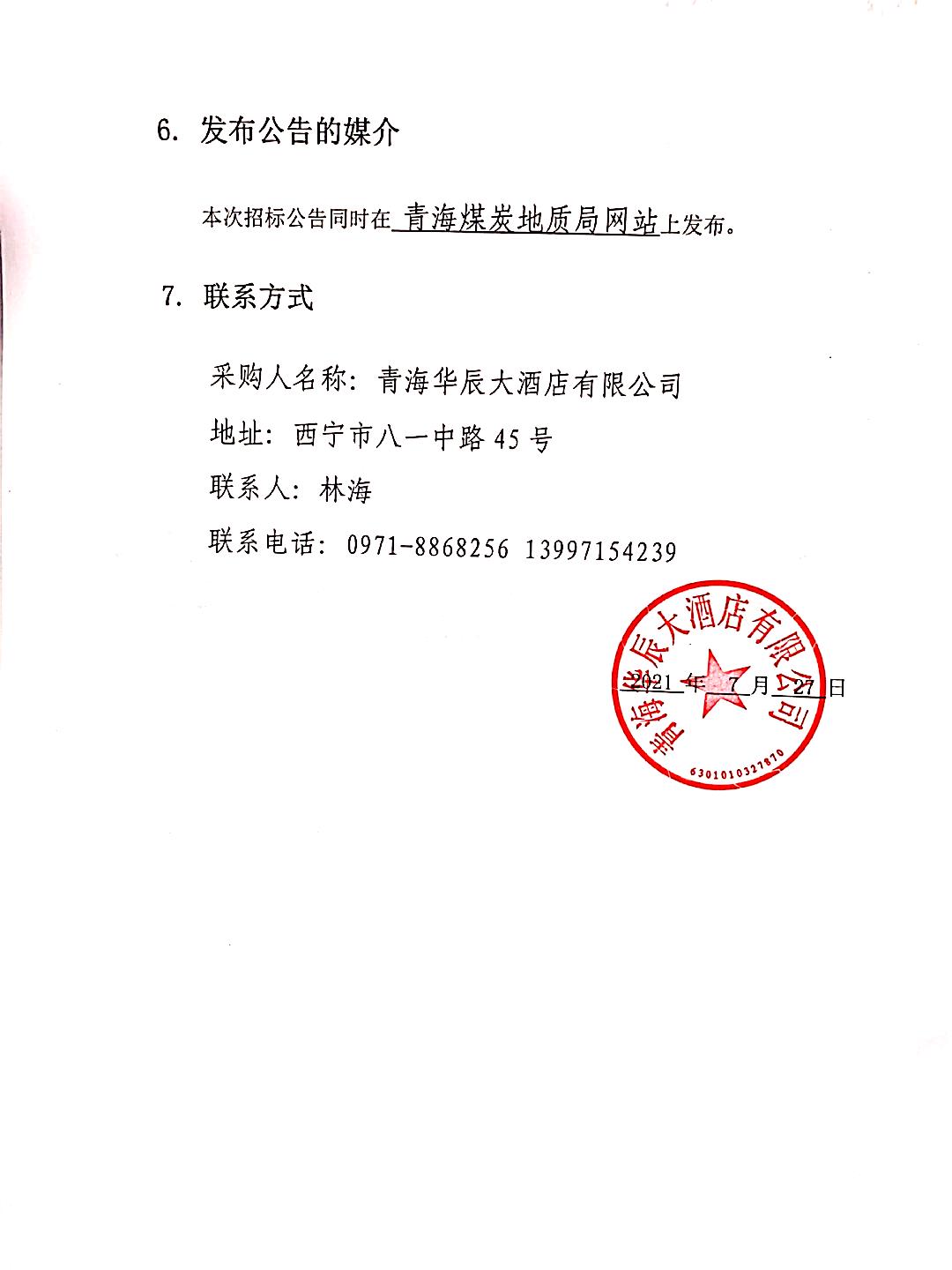 青海华辰大酒店有限公司锅炉改造设备采购招标公告