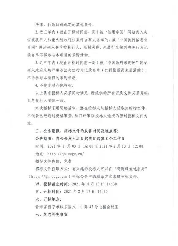 青海煤炭地质105勘探队生产车辆采购项目招标公告