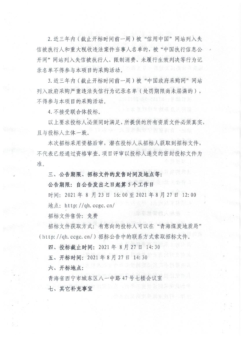 青海煤炭地质105勘探队生产车辆采购项目招标公告