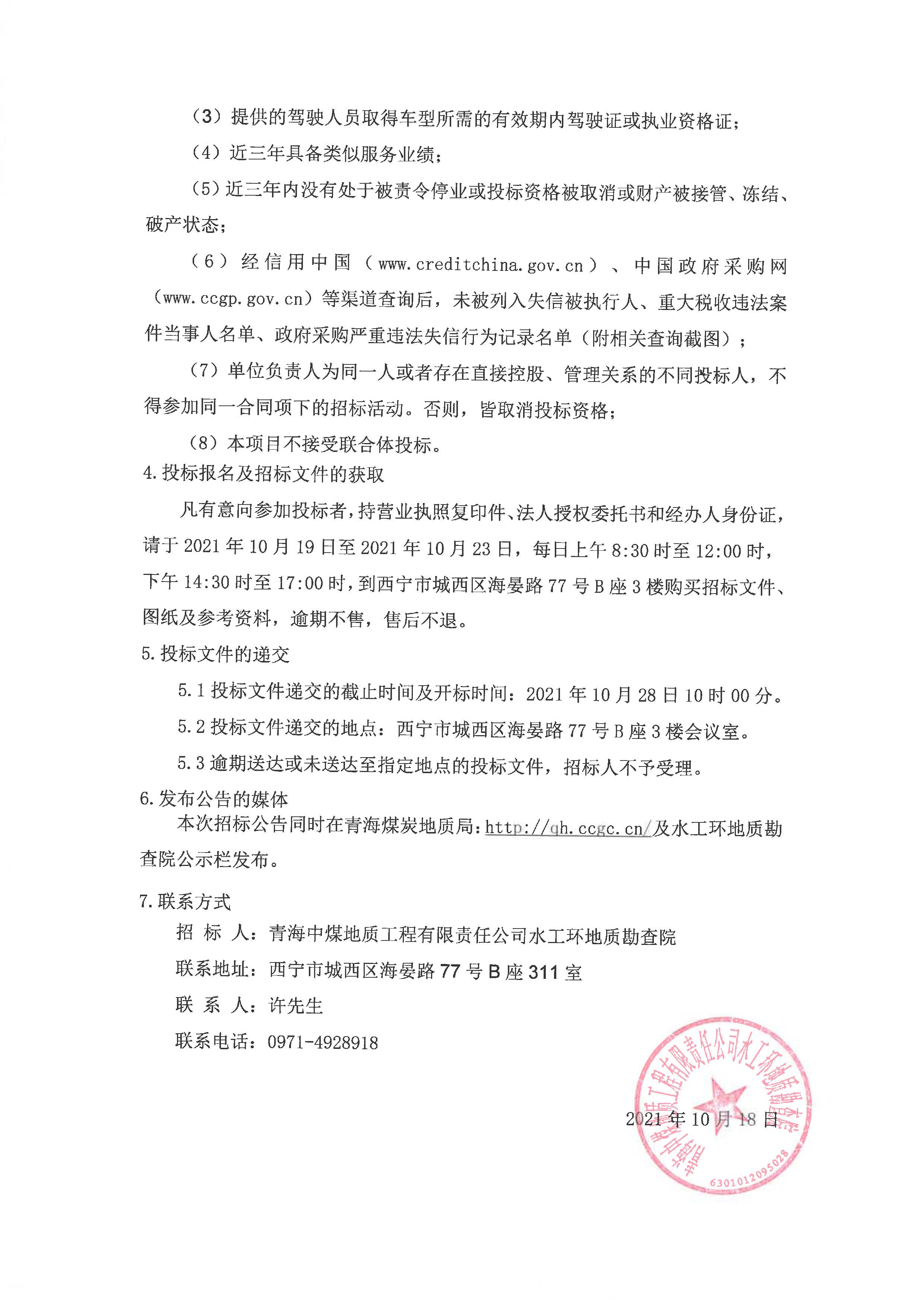 青海煤炭地质勘查院公开招标公告