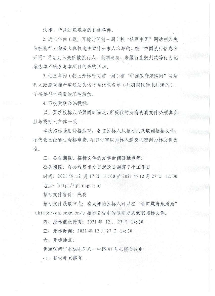 青海煤炭地质一0五勘探队石油钻杆采购项目招标公告