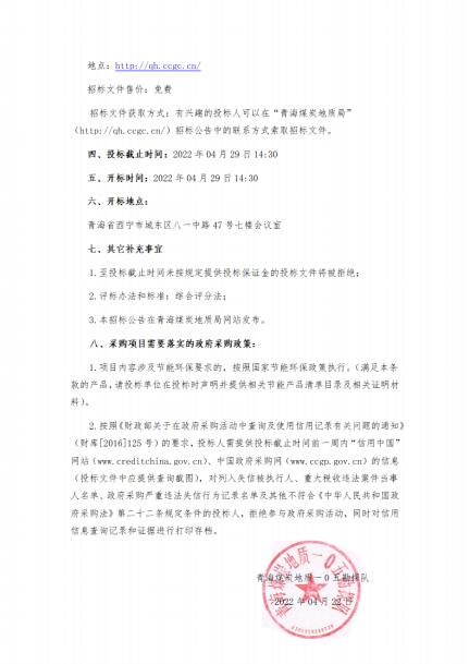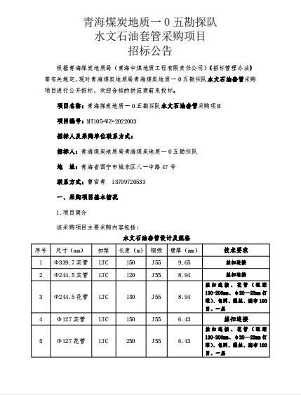 青海煤炭地质一 0 五勘探队水文石油套管采购项目