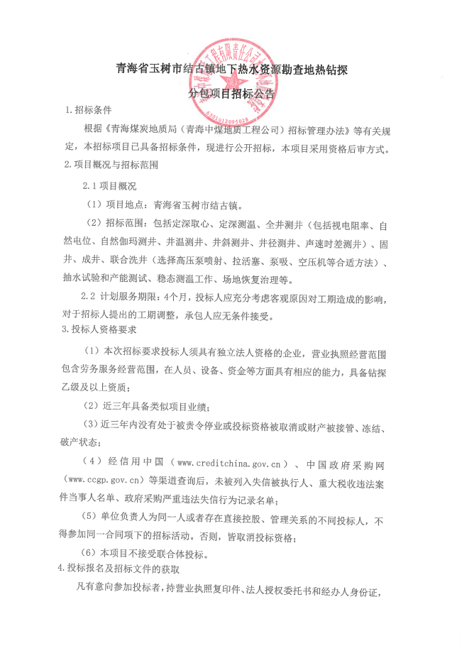 青海省玉树市结古镇地下热水资源勘查地热钻探工程招标公告