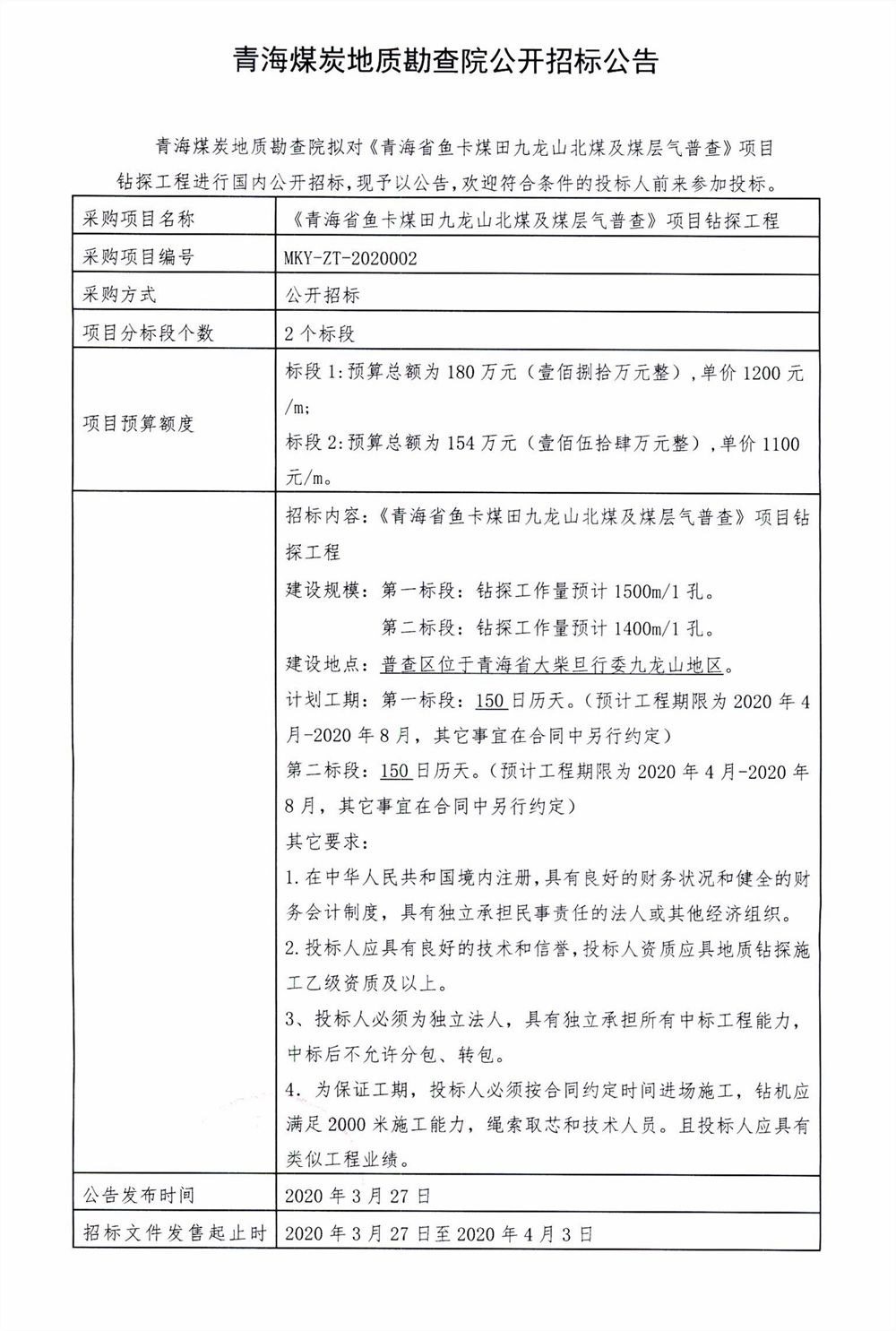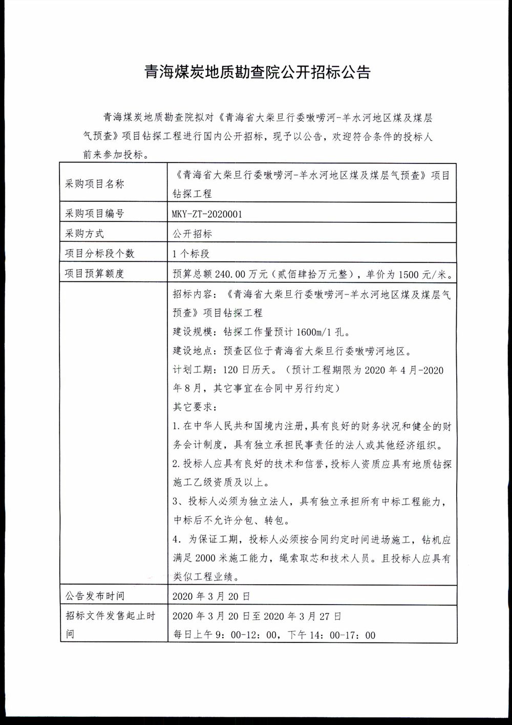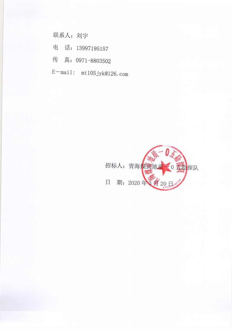 中国煤地7楼会议室五、投标保证金(一)投标保证金递交投标人须按本项目规定的投标保证金金额进行缴纳(保证金金额详见本篇,由投标人从其基本账户将投标保证金汇至以下账户,2、各投标人在递交投标保证金时,一、招标项目内容项目内容限价(元)投标保证金(万元)备注青海煤炭地质一0五勘探队石炭系页岩气分析、化验、测试项目不设定拦标价1二、资金来源本单位项目预算资金,投标人参与本项目投标的所有费用均应由投标人自行承担。