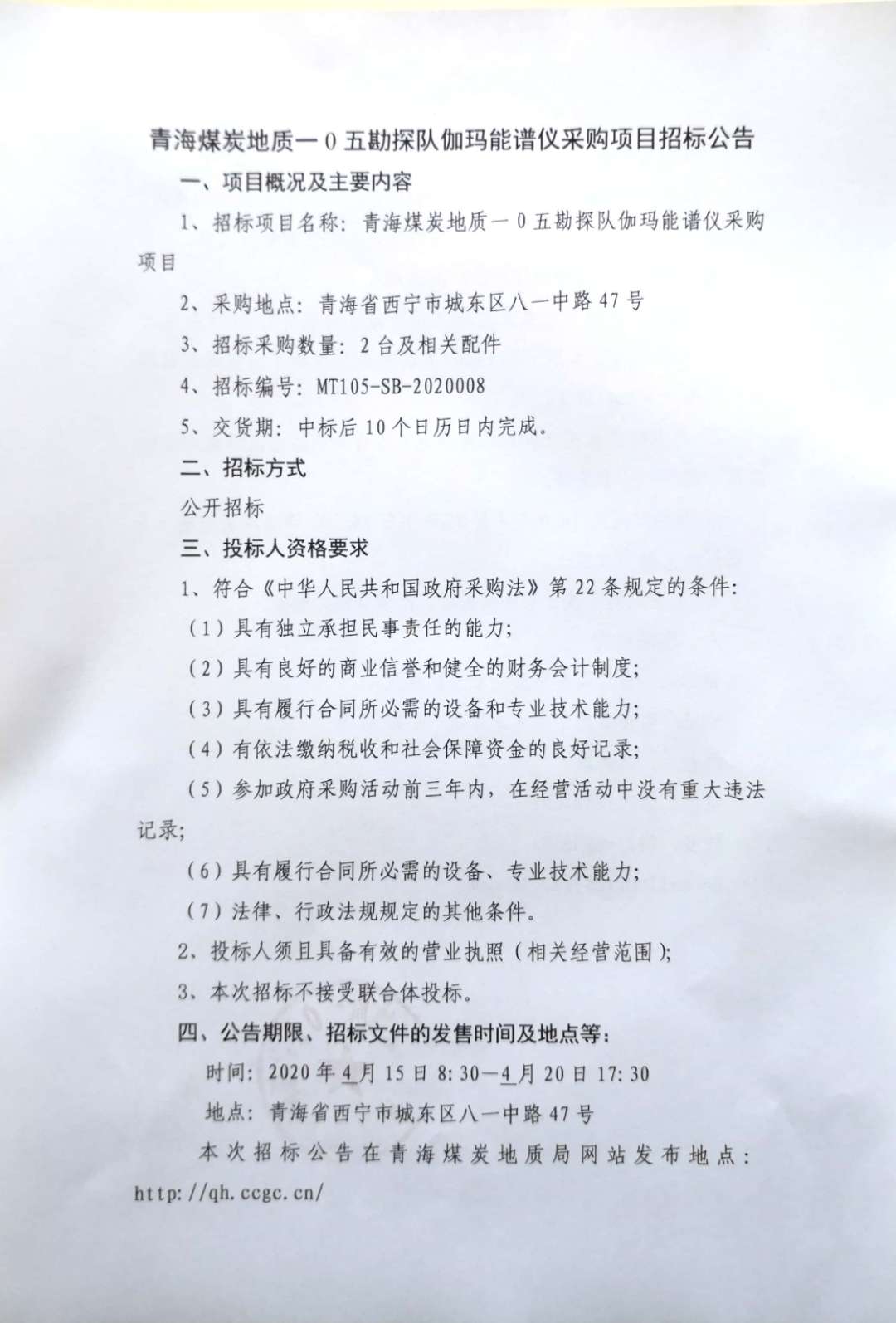青海煤炭地质一0五勘探队伽玛能谱仪采购项目招标公告