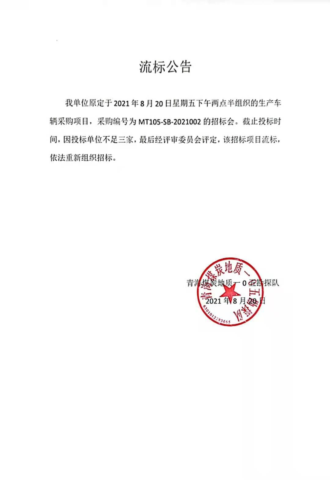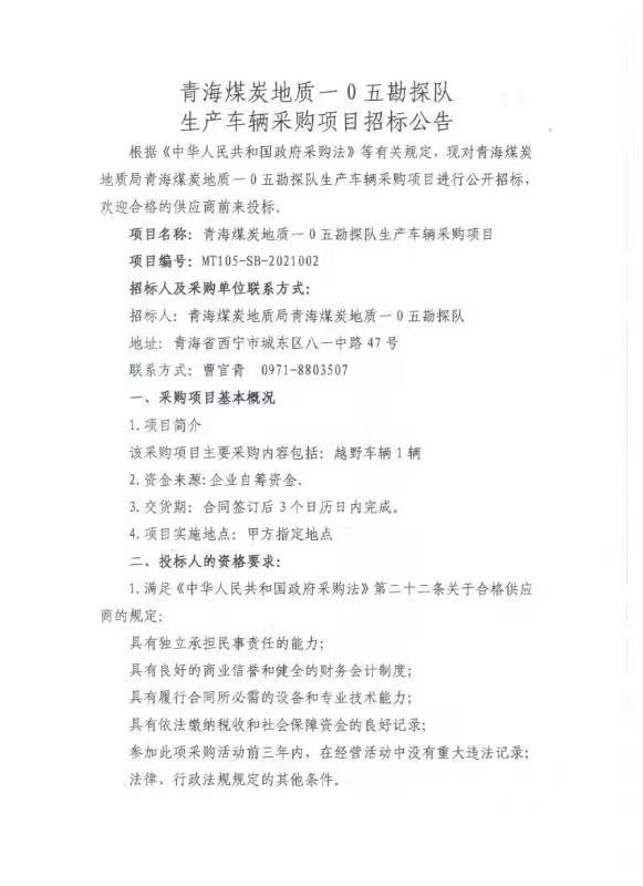 青海煤炭地质105勘探队生产车辆采购项目招标公告