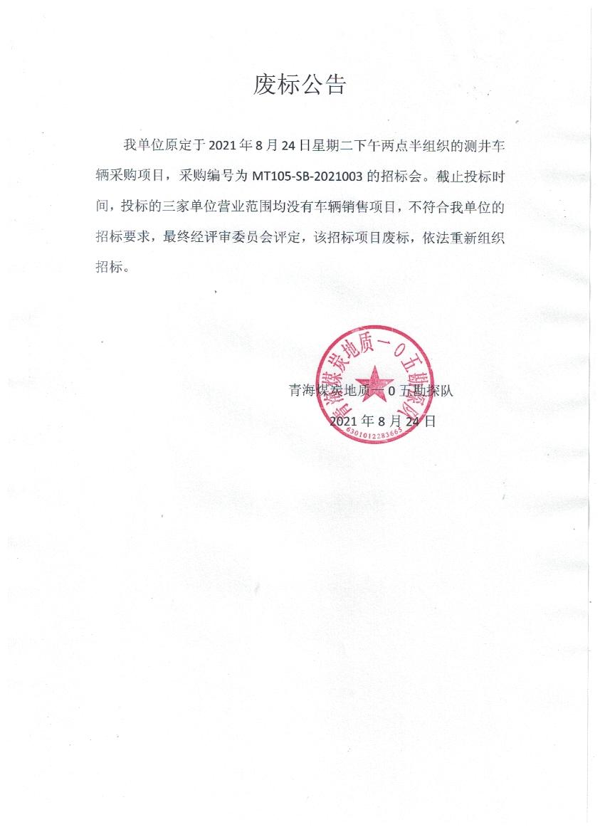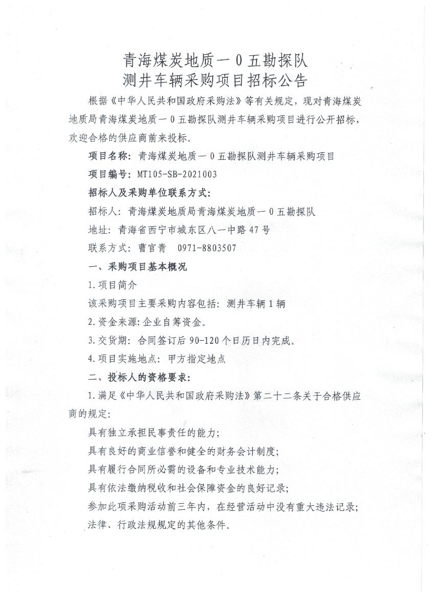 青海煤炭地质105勘探队测井车辆采购项目招标公告