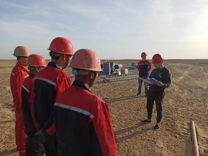 戈壁滩的太阳落的比较晚,忙至下午七点,当太阳跟地平线还有四十五度夹角时,开始往项目部驻地赶。