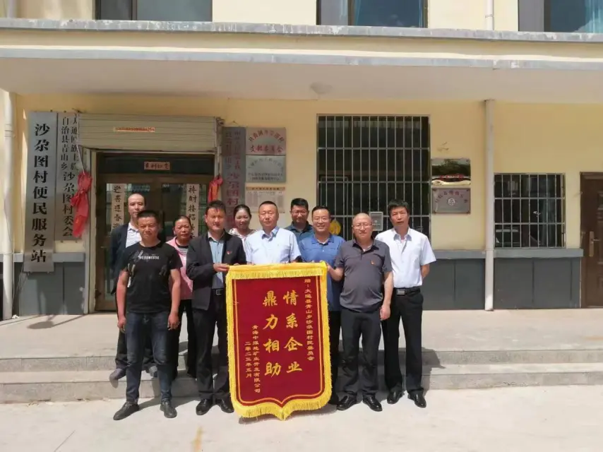 大通县青山乡沙尕图村是公司在建项目所在地之一,在项目实施过程中得到了该村的大力协助,并结下了深厚的友谊。为表达对村委会诚挚的谢意,借本次共建活动,公司给沙尕图村委会赠送了“情系企业 、鼎力相助”的锦旗。村委会书记刘国芳代表沙尕图村接收了锦旗,并感谢公司为新农村建设做出了贡献,为全体村民办了实事,今后将加强企业和村委会的共建活动。